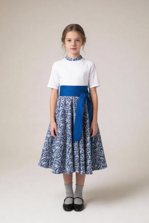 Beyaz & Lacivert Gümüş İşlemeli Jakar Elbise