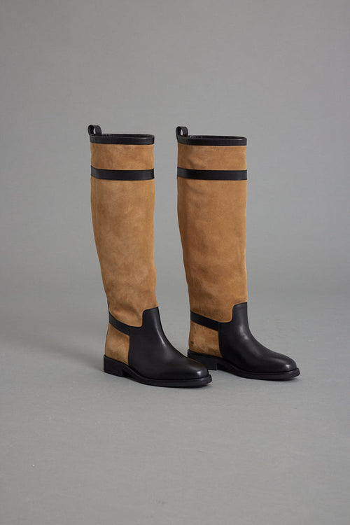 Bej & Siyah Süet-Deri Çizme