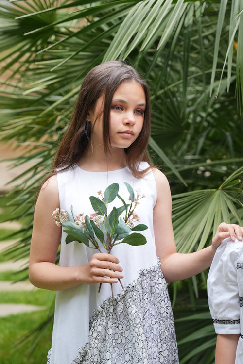 Beyaz & Siyah Dantel Detaylı Elbise