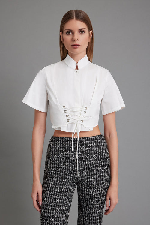 Beyaz Kuşgözlü Saten Pamuk Üst