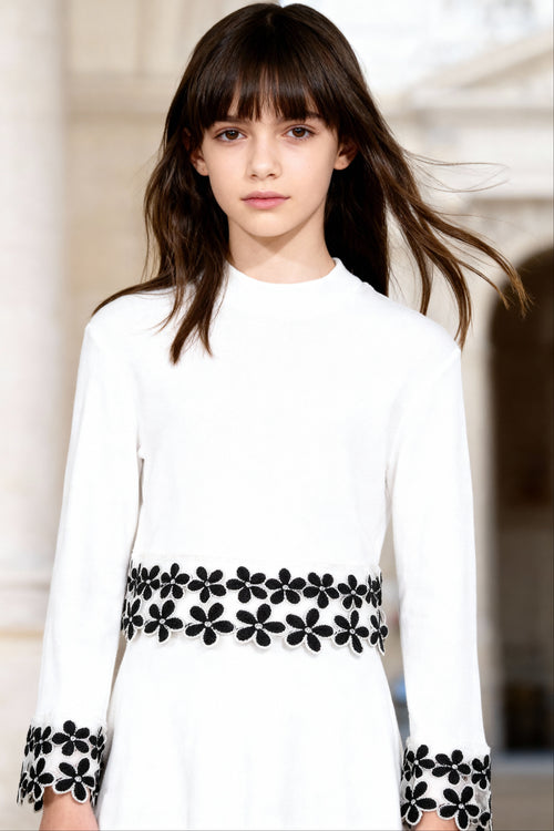 Beyaz Çiçek Aplikeli Örme Etek