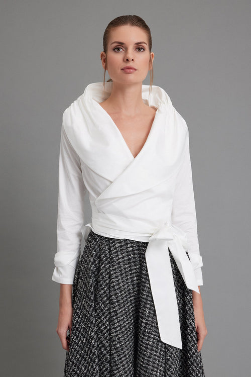 Beyaz Saten Pamuk Devrik Yaka Bluz